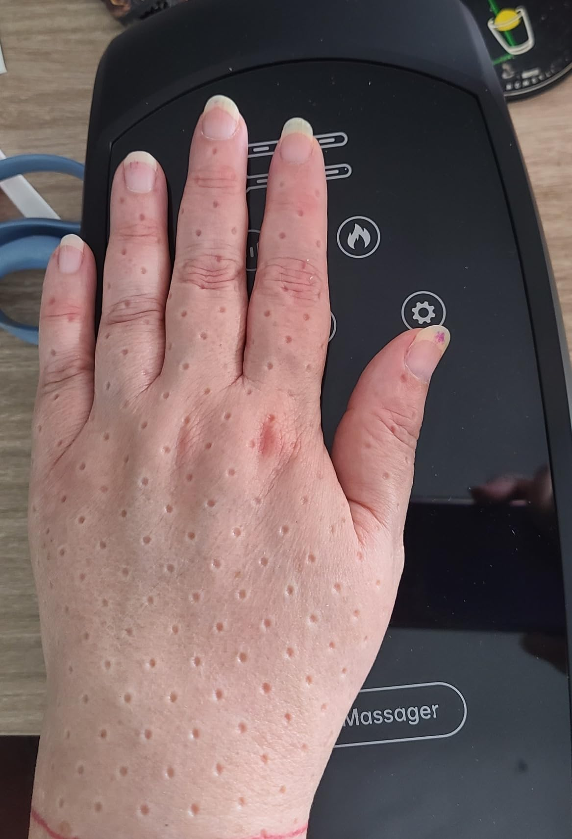 '' I’m 58 years old and have been dealing with severe carpal tunnel syndrome in my right arm. My fingers are constantly numb, and there’s a burning sensation that’s just become part of my daily life. I’ve always considered myself a tough guy, someone who can handle pain but I’ve reached the point of waking up at night crying from it. Today, this device arrived, and to be honest... it surprised me. It felt amazing. The heat gets nice and strong, and the pressure is firm in a really good way. I do wish the heat level could be adjusted, but even so, after just one session, I felt a huge difference. My hand and arm feel completely different. My fingers, which were always cold, finally warmed up I could actually feel the blood flowing again. This device really delivered. It's been a long time since I felt this kind of relief. ''